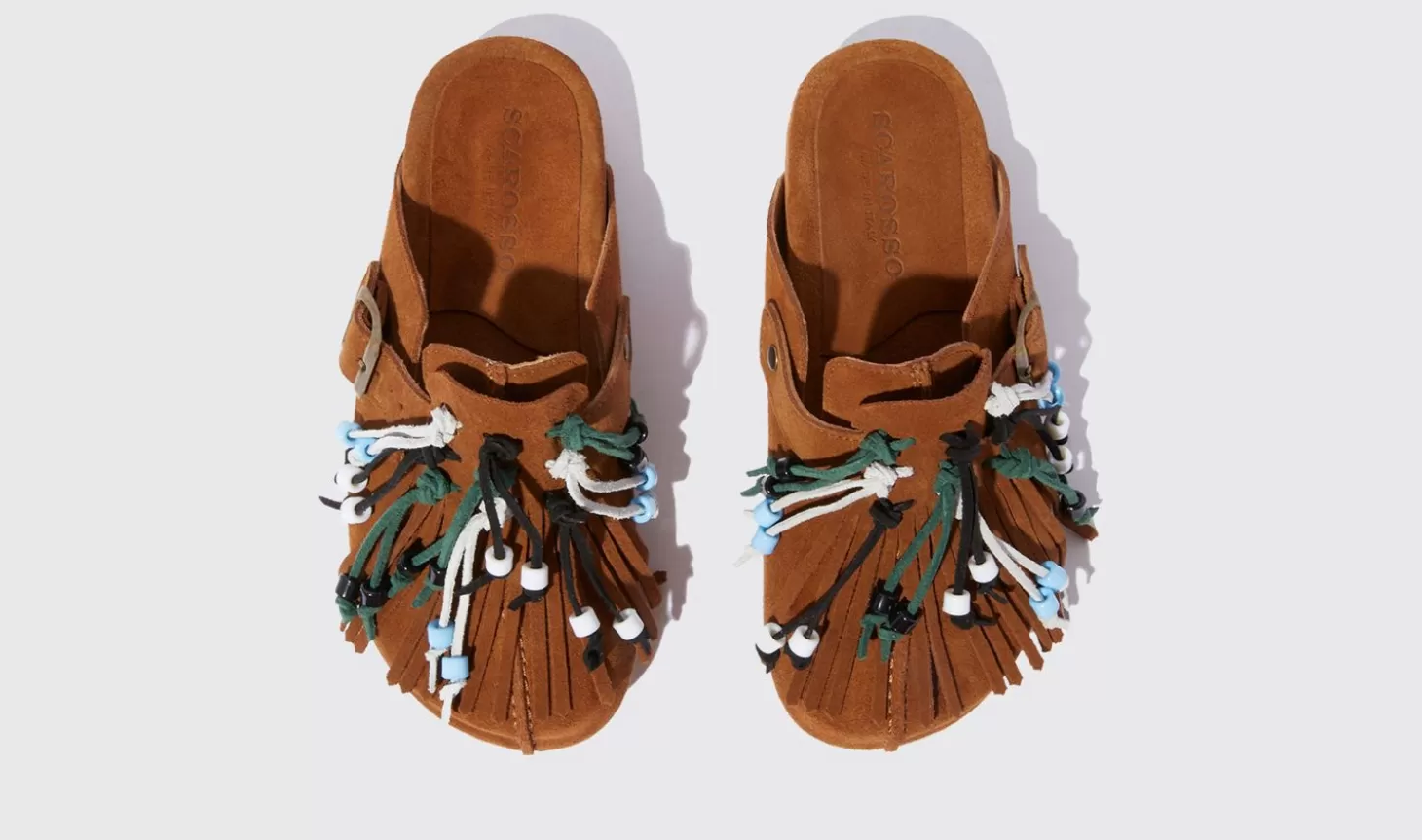 The ‘Gea’ Is Our Sabot Mule For Women That Features A Tasseled Upper With Beaded Detailing And A Round Apron Toe.